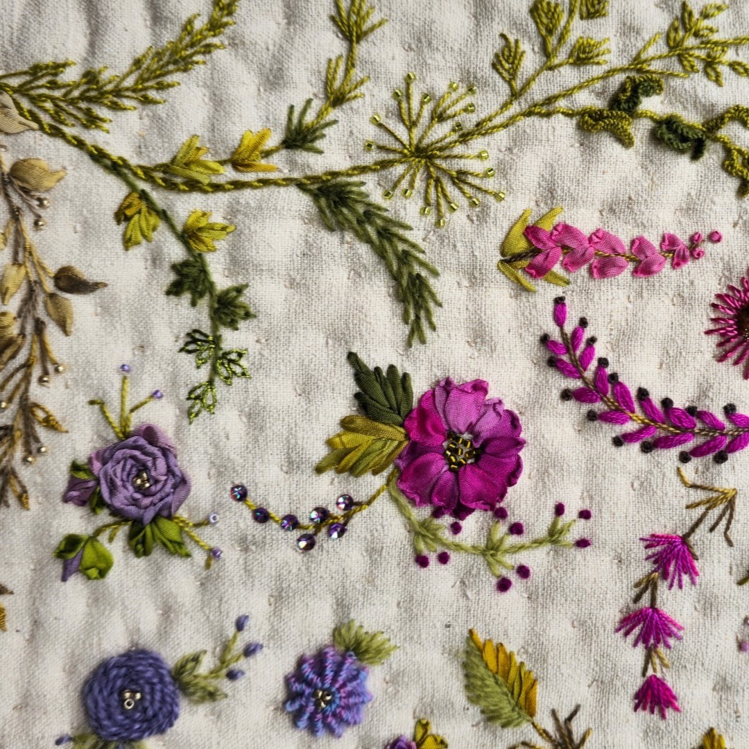 Jennifer has assembled an assortment of products to inspire and explore your own creative practice. From patterns, published books to sumptuous thread and embellishment packs. Consisting of high-quality hand dyed embroidery ribbons, threads, sequins, and beads, these thread packs are an excellent companion to your own creations or those found in Jennifer’s book and patterns.